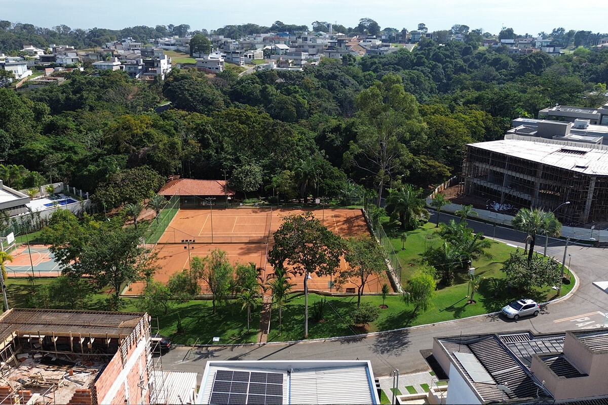 A área esportiva é ampla e diversificada, com 4 campos de futebol soçaite, campo de areia, quadra poliesportiva, quadra de peteca, 6 quadras de tênis e quadra de squash, proporcionando opções para todos os gostos e idades.