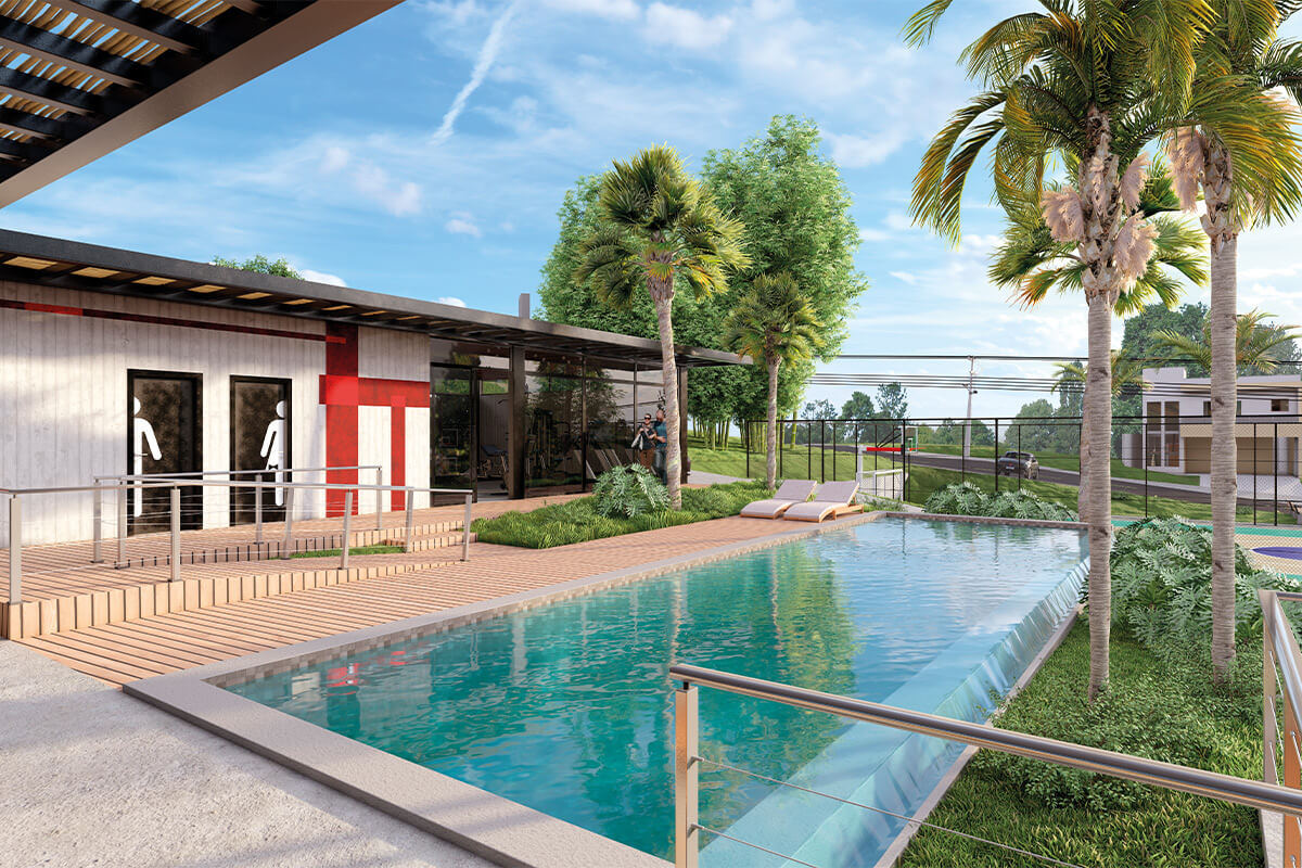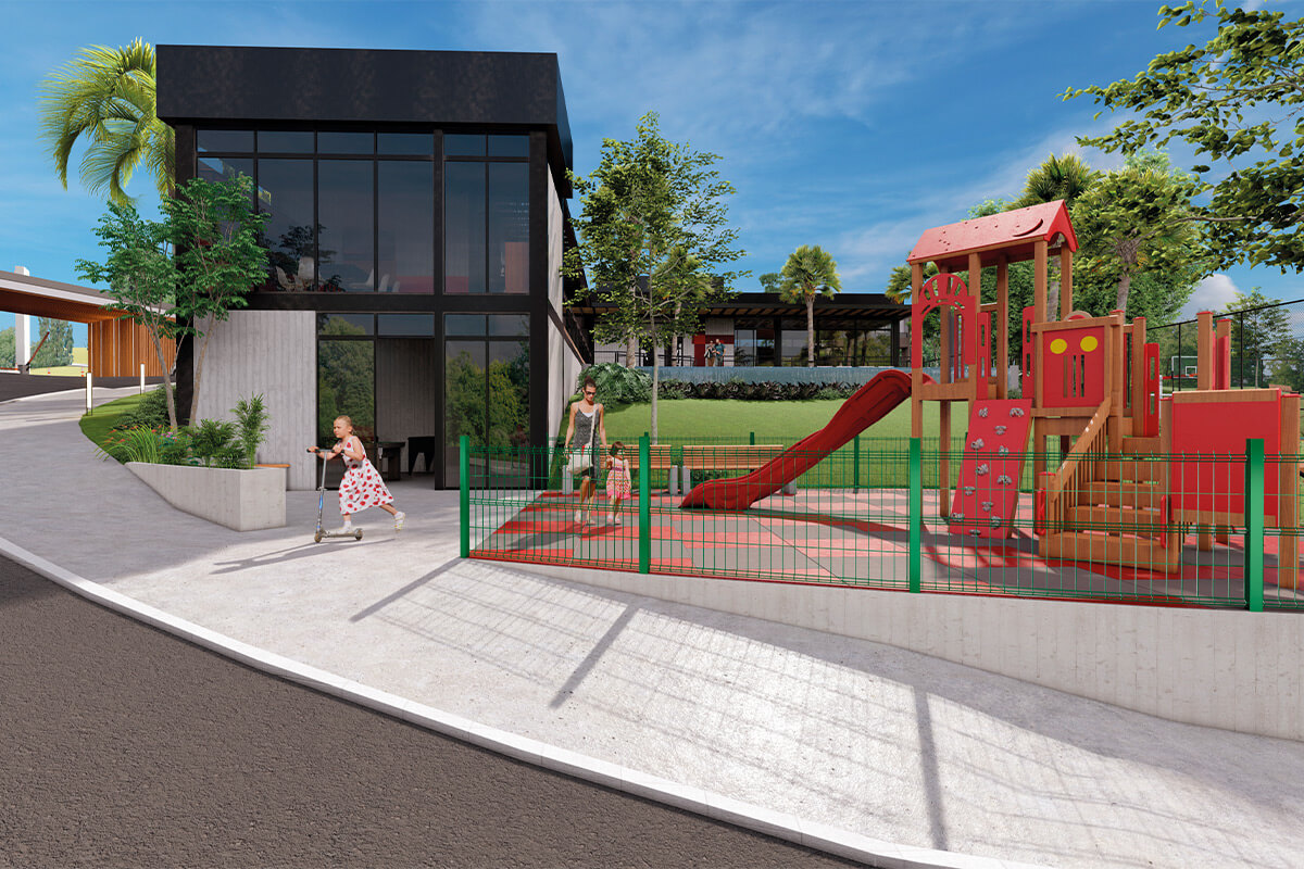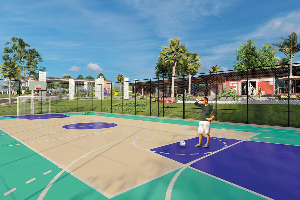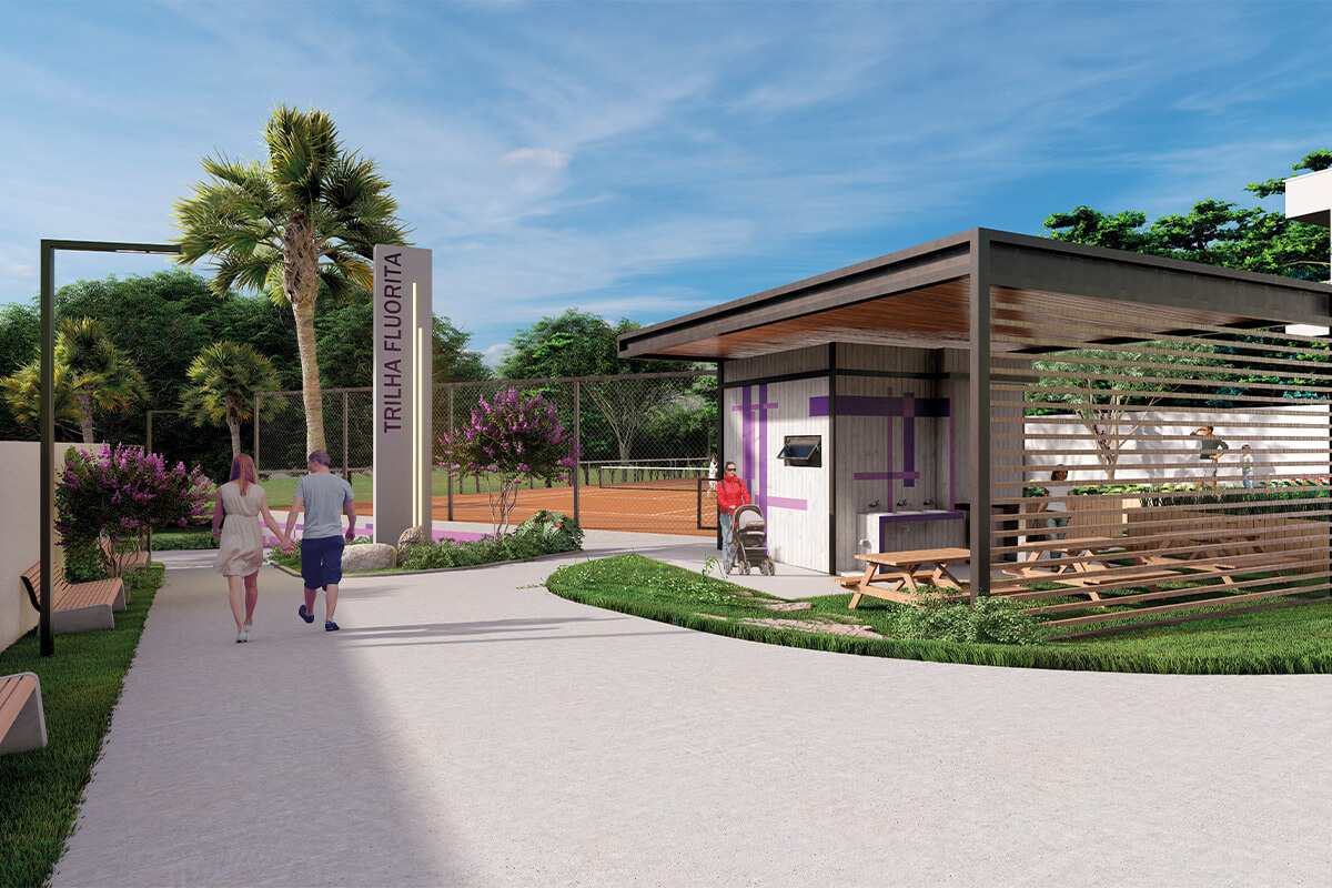O condomínio fechado conta com lotes a partir de 250m², infraestrutura completa, mais de 10 áreas de lazer incluindo piscina, lago, trilha, quadra de beach tennis e muito mais.