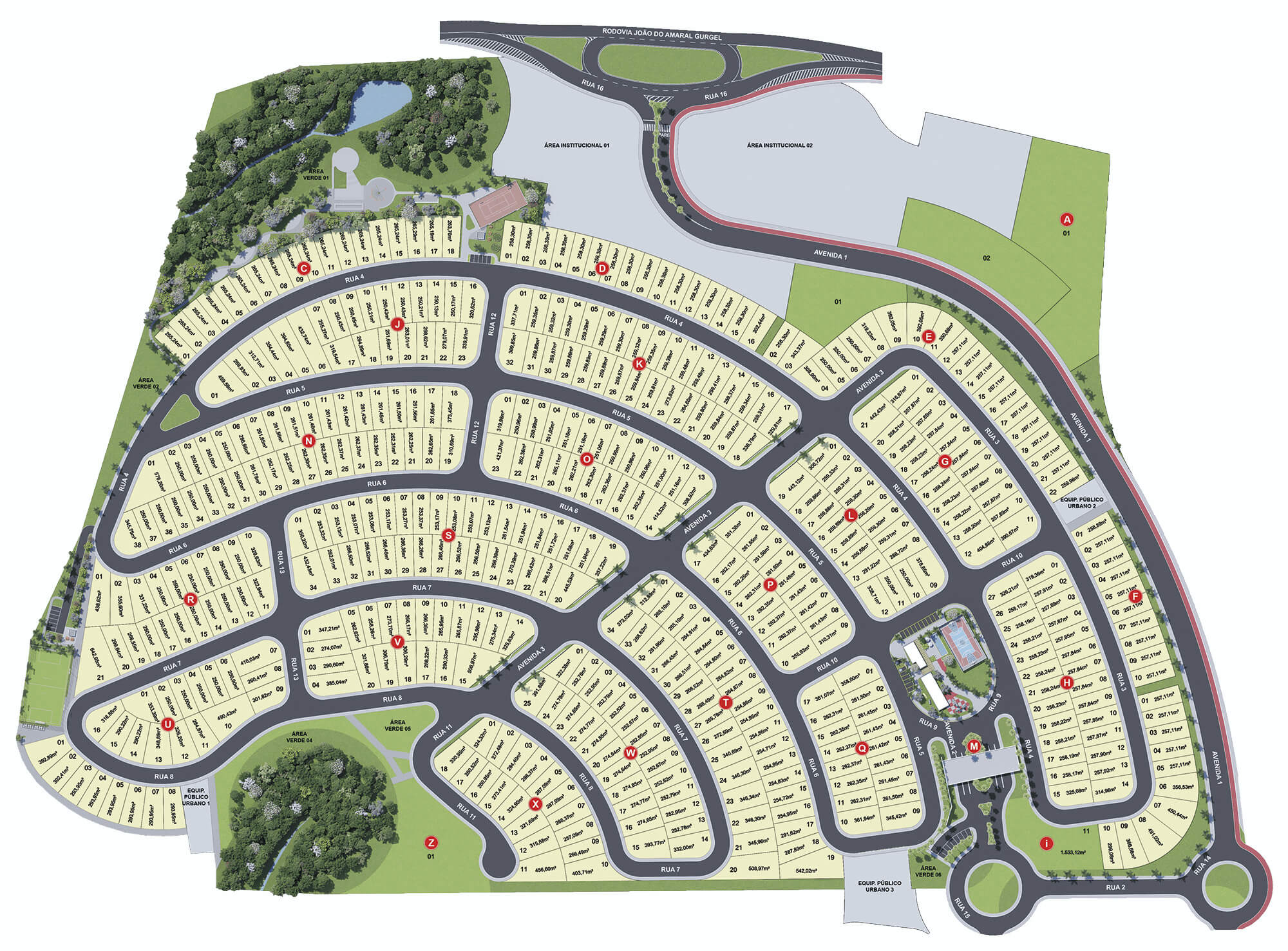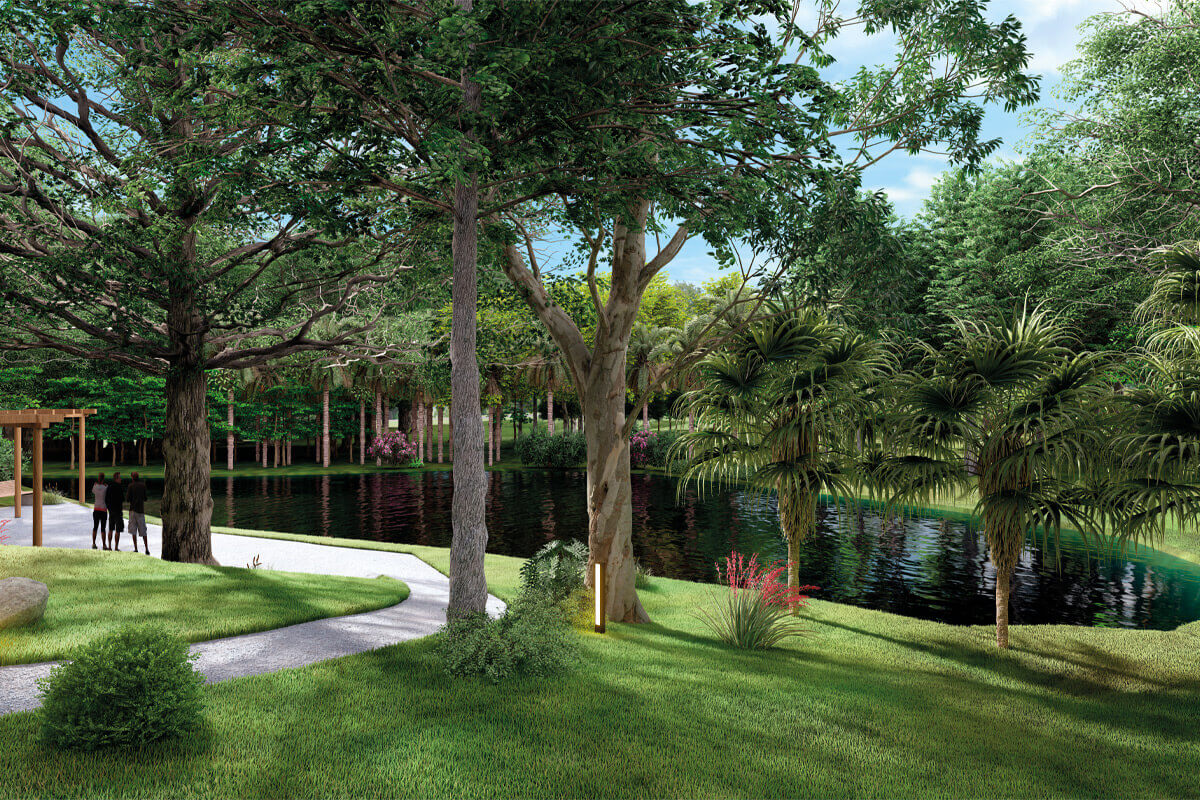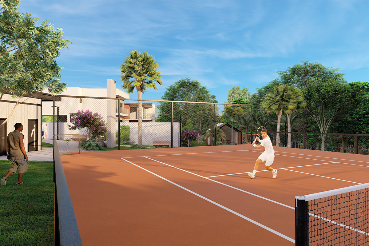 O condomínio fechado conta com lotes a partir de 250m², infraestrutura completa, mais de 10 áreas de lazer incluindo piscina, lago, trilha, quadra de beach tennis e muito mais.