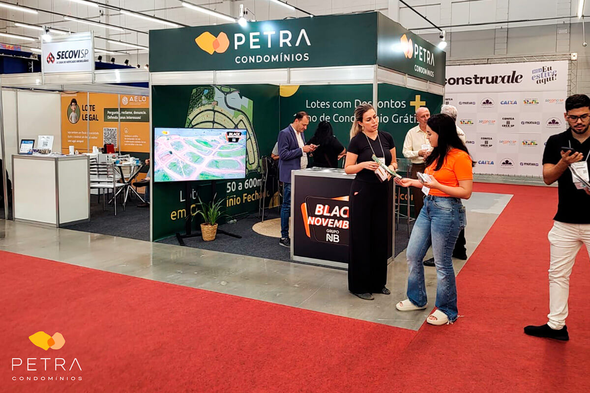 Os visitantes da Construvale que visitarem o estande do Petra Condomínios conhecerão mais sobre o loteamento e poderão fechar negócio com condições especiais: descontos de até 13 mil + 1 ano de condomínio grátis.